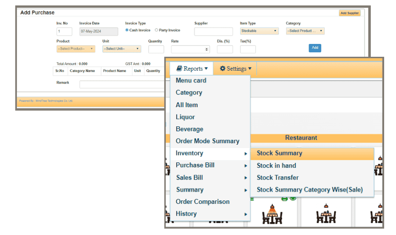 Empower you to maintain optimal stock levels, minimize wastage, and streamline procurement processes. With detailed stock reports and purchase modules, you can gain valuable insights into your inventory usage, track expenses, and ensure timely replenishment of stock, all contributing to improved operations and financial health.